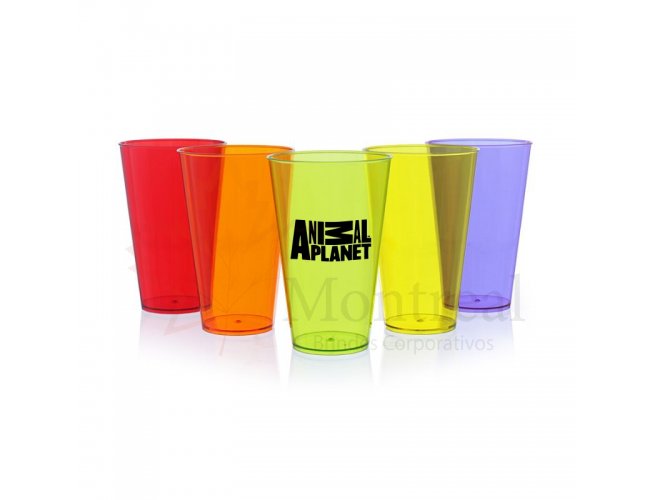 Copo fabricado em poliestireno P.S. Cristal. Produto em plástico não descartável, atóxico e inodoro. Capacidade para 550 ml.