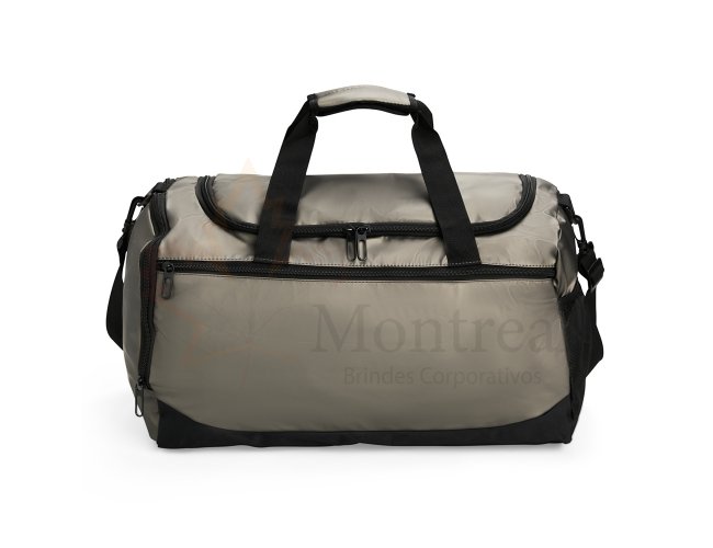 Bolsa em couro sintético impermeável, com detalhes em malha e capacidade de até 26 litros. Apresenta três compartimentos em diferentes tamanhos, incluindo espaço tênis, além de bolso lateral em tela de nylon com elástico. Possui duas alças de mão com suporte de velcro e alça transversal.