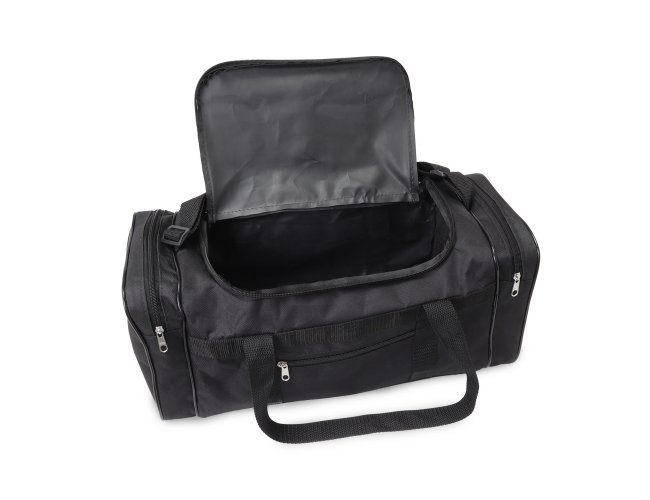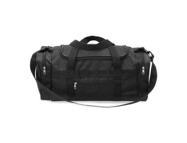 Bolsa de nylon 23 litros com quatro compartimentos, possui alça transversal regulável e alças de mãos.