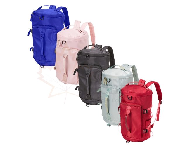 Bolsa esportiva de 30 litros em poliéster de impacto impermeável com três compartimentos, sendo um deles exclusivos para tênis. Compartimento principal com dois bolsos, sendo um deles com zíper exclusivo para itens molhados. Com bolsos laterais e duas alças de mãos, a bolsa contém alças de compensação, alça transversal removível e alças para as costas ocultas no compartimento inferior, podendo ser transportada como mochila.