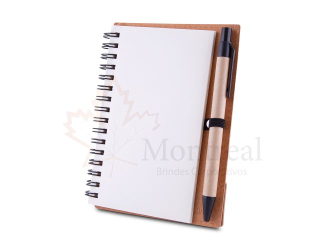 Caderno A6 capa em papelão reciclado com caneta