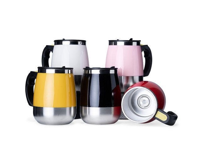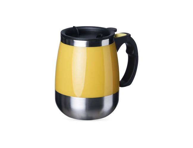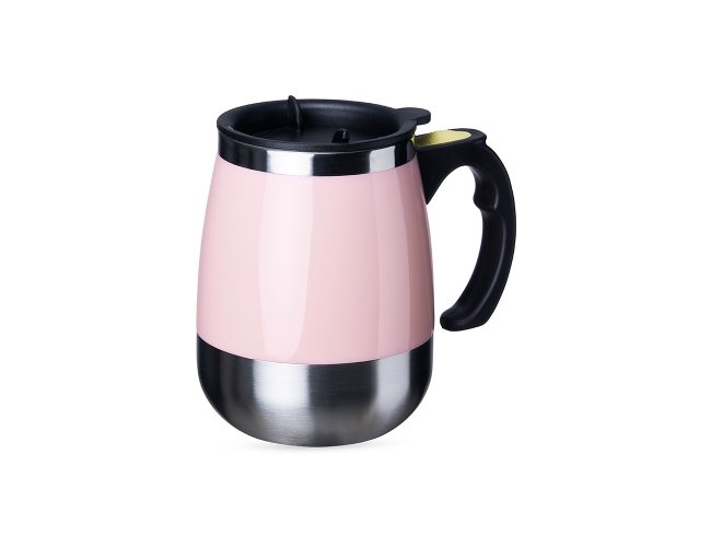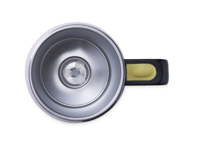 Caneca isotérmica com misturador de bebida, parte interna feita em inox parede dupla com capacidade de 350ml, acabamento colorido em plástico. Contém tampa plástica com bocal e trava de segurança. Para o funcionamento, utiliza-se duas pilhas AAA (não acompanha).