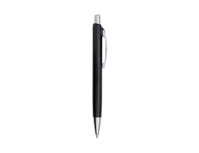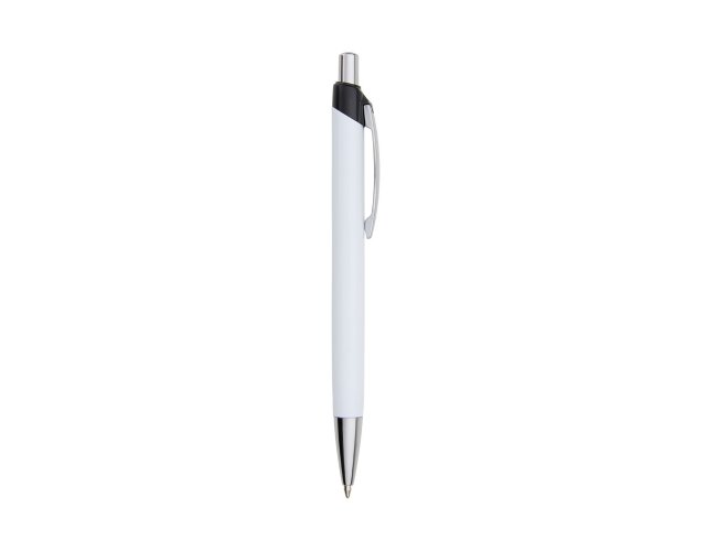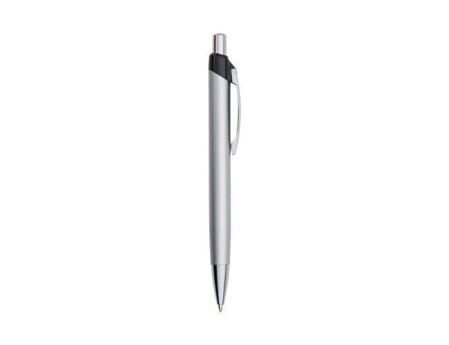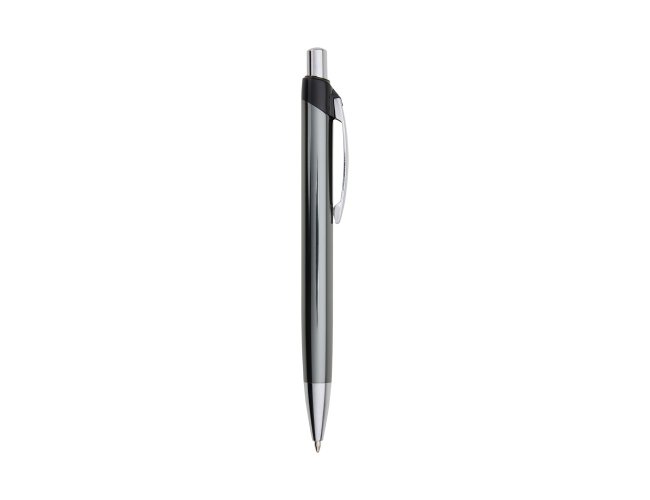 Caneta metálica com acionamento por clique, carga esferográfica azul 1,0mm.