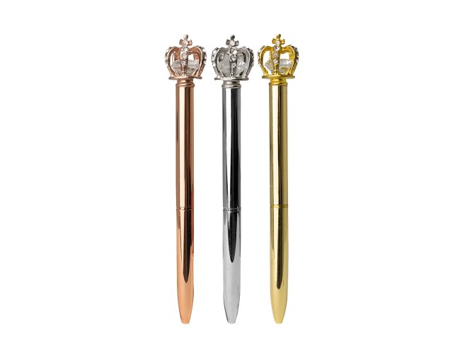 Caneta metálica com carga esferográfica azul 1,0mm e acionamento por rotação.