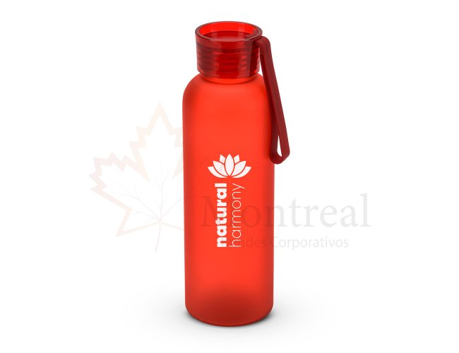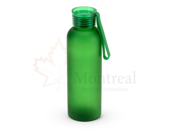 Squeeze esportiva em PET 100% reciclado, com acabamento fosco. A tampa em PS, à prova de vazamentos, possui fita em silicone que facilita o transporte. Capacidade até 600 mL. Certificação EU Food Grade. ø66 x 215 mm