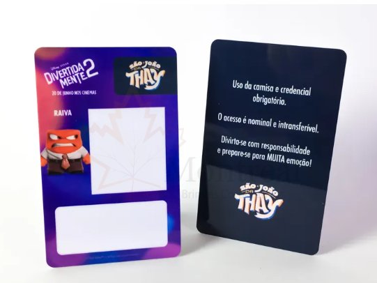 Crachá em PVC gramatura 0,76. Gravação digital sem limites de cores, podendo gravar frente e verso. Tamanho: 5,5x8,6cm