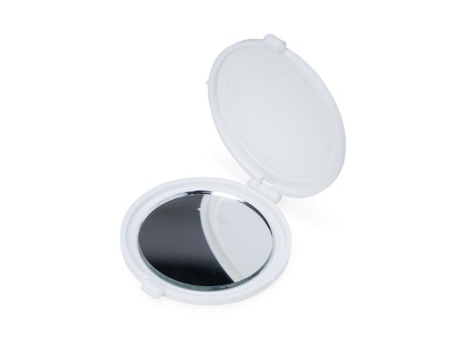 Espelho plástico sem aumento. Produzido em plástico resistente, frente e verso liso.