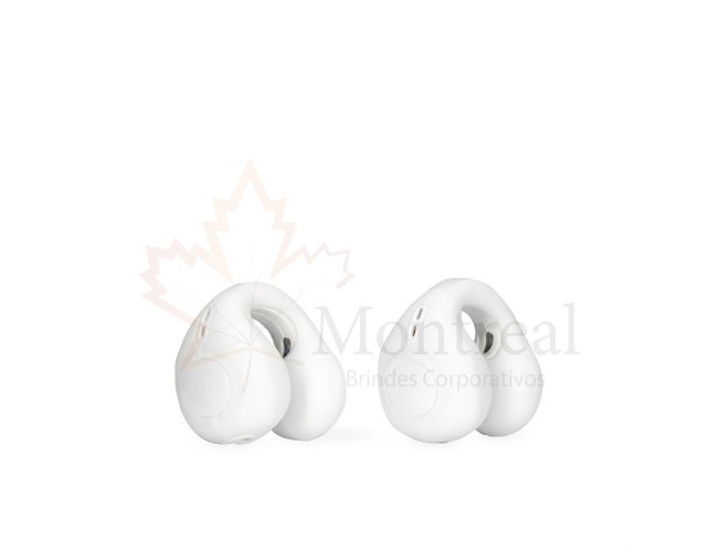 Descrição: Fones de ouvido sem fio com estrutura leve e confortável feita em plástico. Seu formato ear cuff, semelhante a um par de brincos, permite o encaixe ao redor das orelhas sem entrar em contato com o canal auditivo, ideal para uso prolongado. Sua conexão via Bluetooth 5.3 oferece estabilidade de áudio com menor consumo de energia. Cada fone apresenta um botão multifunções, com comandos por toque para trocar músicas e controlar o volume. Acompanha cabo USB-C para carregamento.