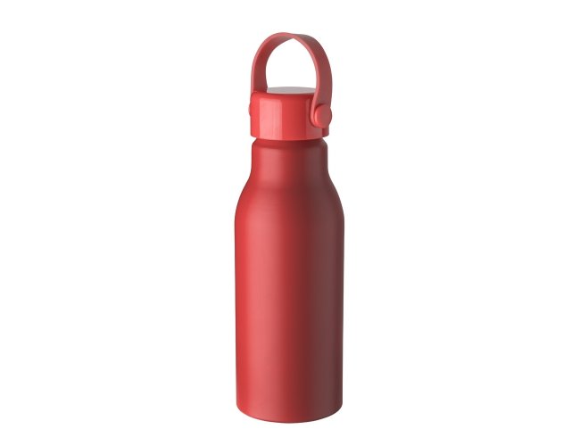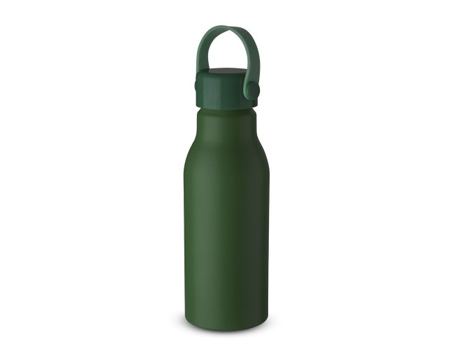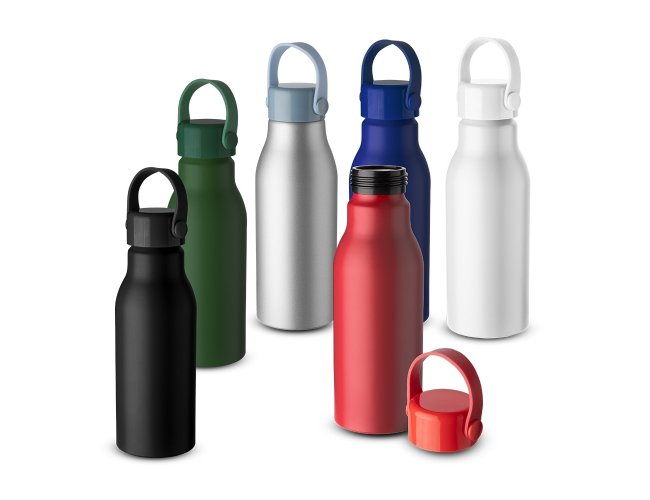 Garrafa de alumínio com capacidade de 700ml, tampa plástica com alça de silicone.