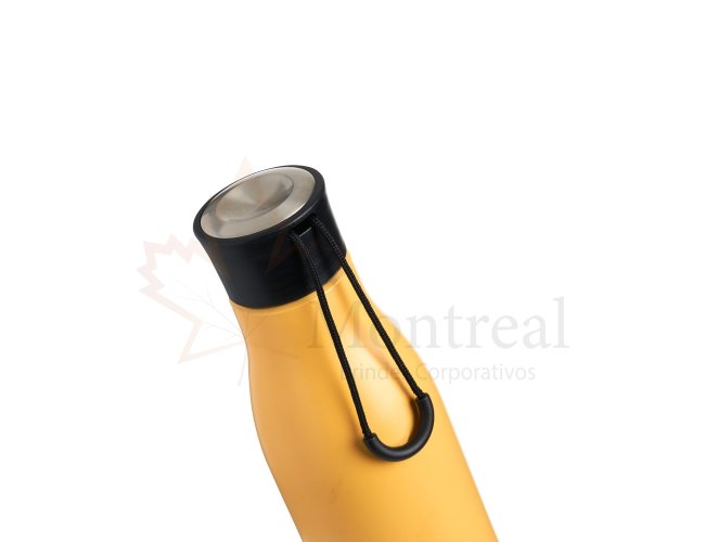 Descrição: Garrafa inox 800ml com pintura colorida. Possui tampa rosqueável com alça para transporte.