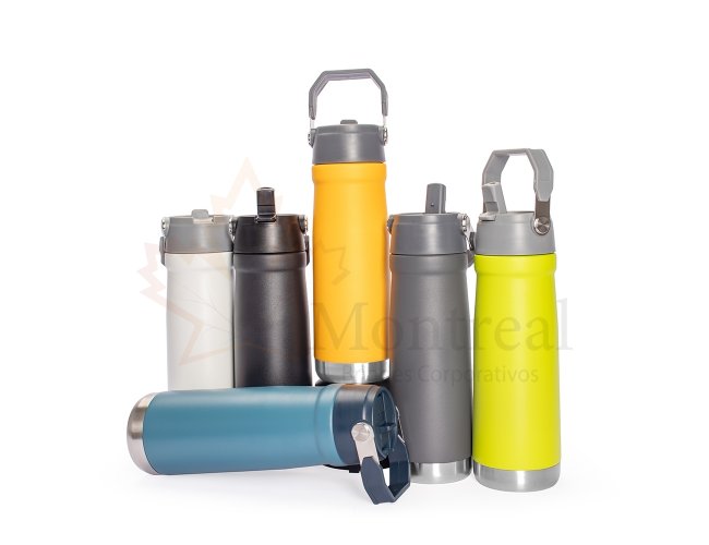 Descrição: Garrafa térmica em inox de parede dupla, capacidade de 700ml. Tampa com alça de transporte, bico flip e canudo interno.