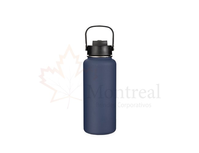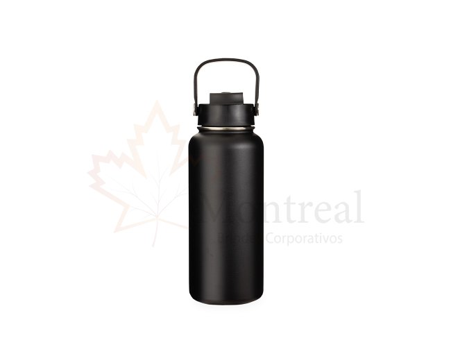 Garrafa térmica em inox com capacidade de até 950ml. Conta com estrutura de parede dupla e vedação a vácuo, permitindo a conservação da temperatura de líquidos por mais tempo. Dispõe de tampa plástica com trava de proteção para o bocal, bico flip, canudo removível e alça para transporte.