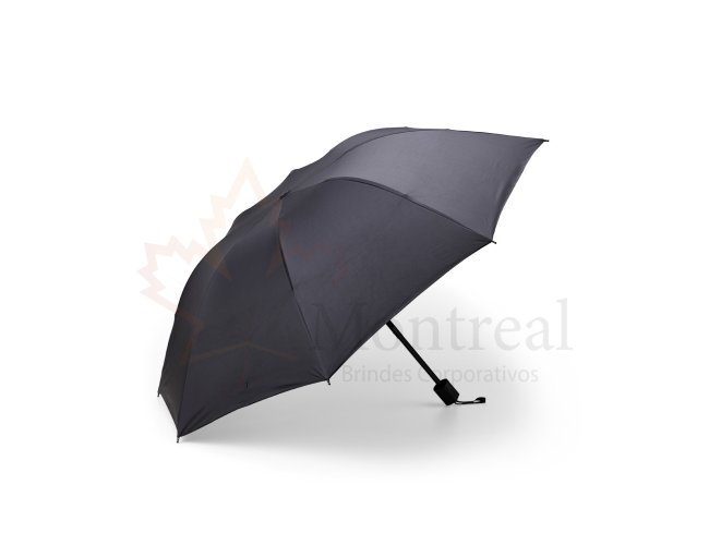 Descrição: Guarda-chuva manual de tecido em nylon com parte interna em vinil. Possui 8 varetas e estrutura em aço, pegador, botão de abertura e alça de nylon. Acompanha capa protetora.