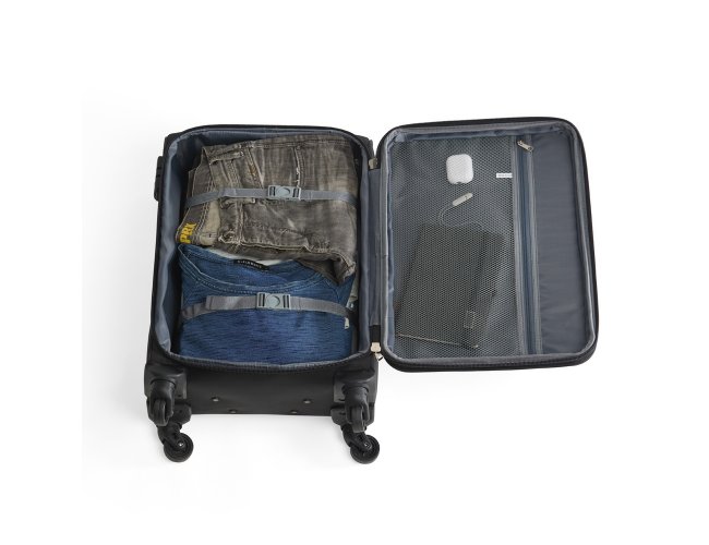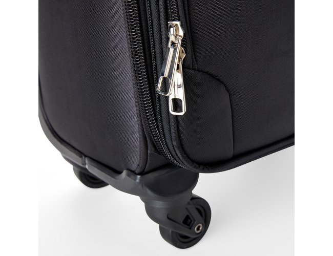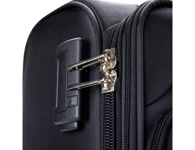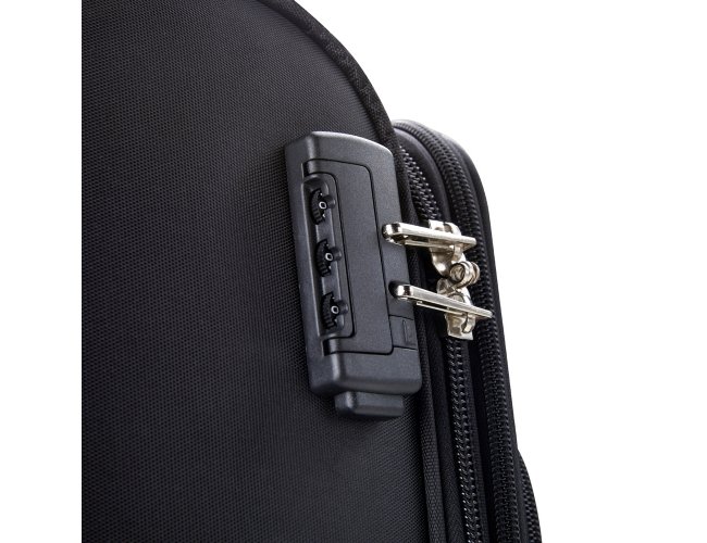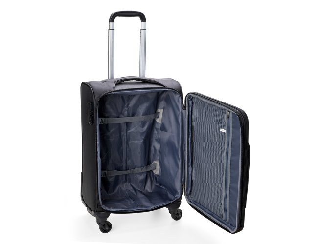 Mala de viagem 48 litros, confeccionada em poliéster de alta qualidade, com cadeado numérico TSA. Possui etiquetas de identificação embutidas na mala, sendo uma integrada ao cadeado e outra na parte de trás da mala, acoplada por estojo em couro sintético. Três compartimentos, bolso telado, cinta compressora para roupas, alça de mão em poliéster, puxador retrátil com regulagem de tamanho, zíper expansível e quatro rodinhas 360º.