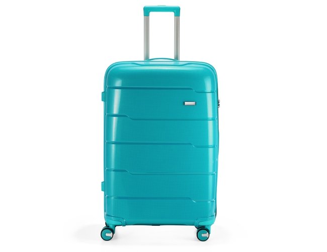 Mala de viagem 95 litros em plástico PP (casca dura), contém cadeado numérico TSA. Compartimentos com bolso telado e cinta compressora para roupas. A mala possui duas alças de mão, puxador retrátil com regulagem de tamanho, quatro rodinhas 360º e apoios laterais. Acompanha placa para personalização.