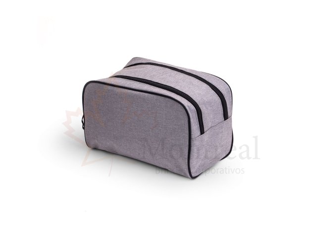 Nécessarie tecido polyester 600D, cursor duplo para fechamento com alça, trava com velcro, alça de mão, gravação Frontal.