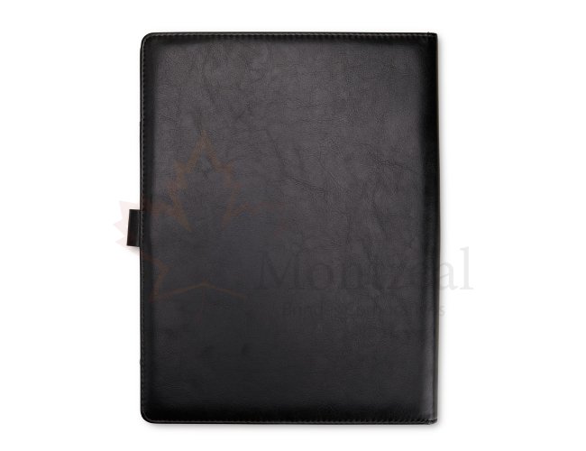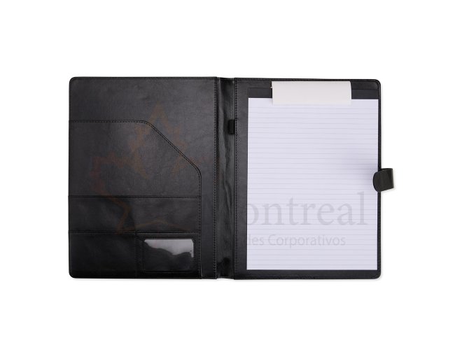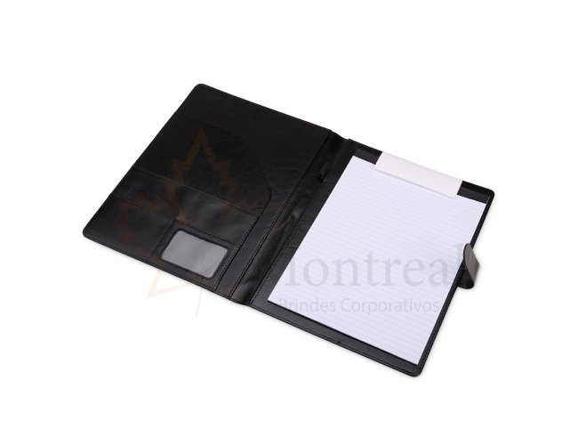 Descrição: Organização impecável com estilo profissional. Nossa pasta executiva, feita em couro sintético de alta qualidade, acompanha um bloco de aproximadamente 20 folhas pautadas removíveis para anotações, suporte para caneta, bolsos para organizar folhas ou documentos, suporte para cartões, incluindo um com visor de identificação. Além disso, possui fechamento magnético, unindo praticidade e elegância em um único produto.