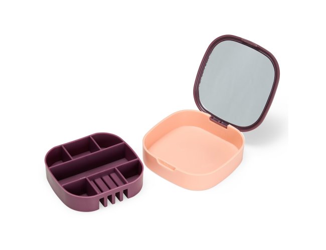 Nosso Porta-jóias organiza seus acessórios de forma prática e compacta. Produzido em plástico, é a escolha ideal para manter anéis, brincos, batom e pulseiras sempre acessíveis. Com 7 compartimentos estratégicos para guardar tudo, feitos em material macio e emborrachado, removíveis para facilitar a limpeza, ele também conta com um espelho na tampa, facilitando na hora de montar looks com as jóias. Perfeito para quem valoriza organização, autocuidado e praticidade no dia a dia.