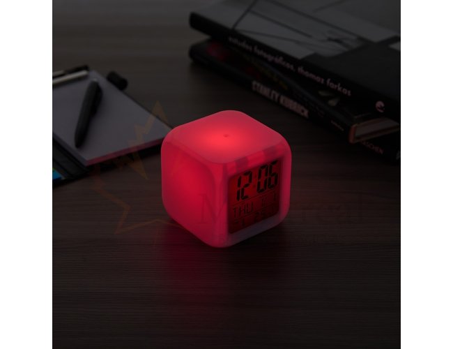 Descrição: Relógio digital LED com despertador, feito em material plástico. Com um display LCD multifuncional que exibe horas, dias da semana, data e temperatura ambiente, o relógio possui a função de alarme com 9 opções de toques, incluindo um prático modo soneca. O LED ativado por meio de botões, proporciona um momento relaxante, exibindo cores suaves de forma alternada, com uma durabilidade aproximada de 15 segundos. Alimentado por 3 pilhas AAA (não inclusas).