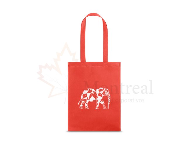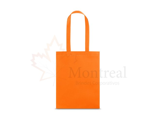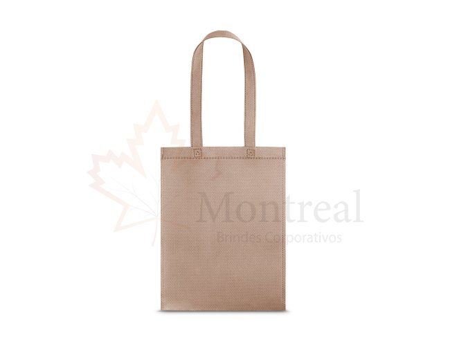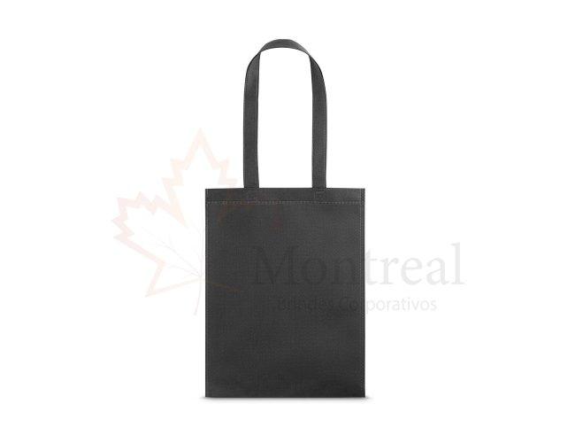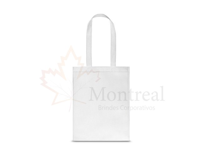 Sacola em non-woven (80 g/m²) termo-selado com alças de 55 cm. Fabricado no Brasil. 270 x 350 mm